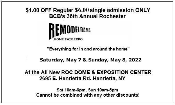 | The BCB is now happy to announce new rescheduled dates for its Remodelram Home Fair Expo! It will be held finally after a three year hiatus because of the Covid pandemic at the Dome in Henrietta, NY on the weekend of Sat. May 7 & Sun. May 8, 2022! It will also be the first combo show with contractors and related products in the Dome and crafter/vendors in Minette Hall and behind them there will be a 30' model train display along with Spider-Man appearing for the kids! |